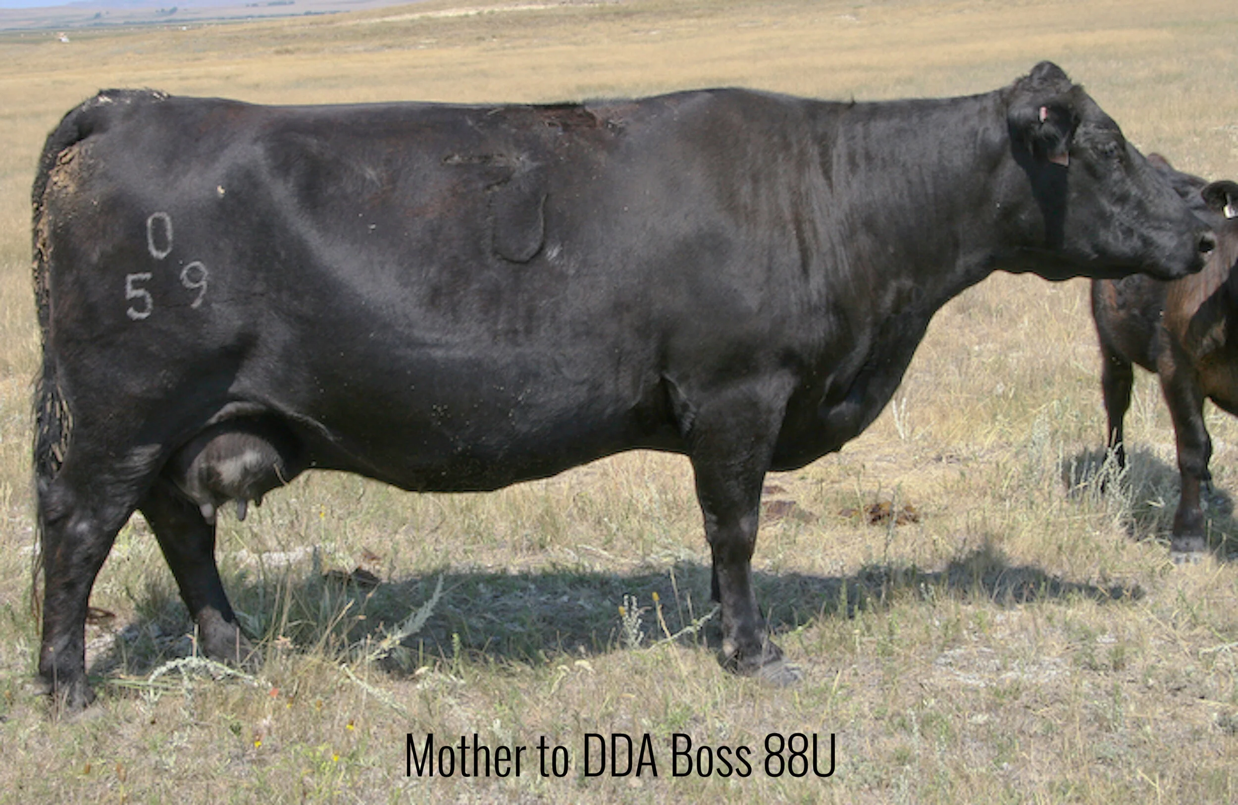 This young bull was his mother’s (059) 17th natural and last calf. We love keeping bulls from cows that can perform at a level that keeps them in the herd this long. 059 is a half sister to our famous DDA Melisa 824. 88U was one of four bulls breeding heifers in 2019 and is now part of our multi sire breeding group.